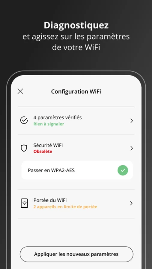 Lancez un diagnostic de votre configuration WiFi et corrigez-la en 1 clic si besoin.