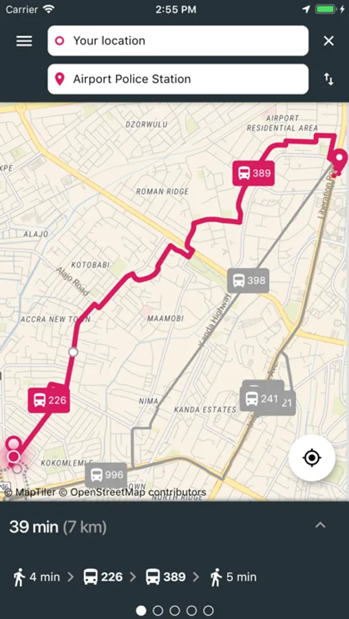 Multiple types of public transport (Bus, Minibus)