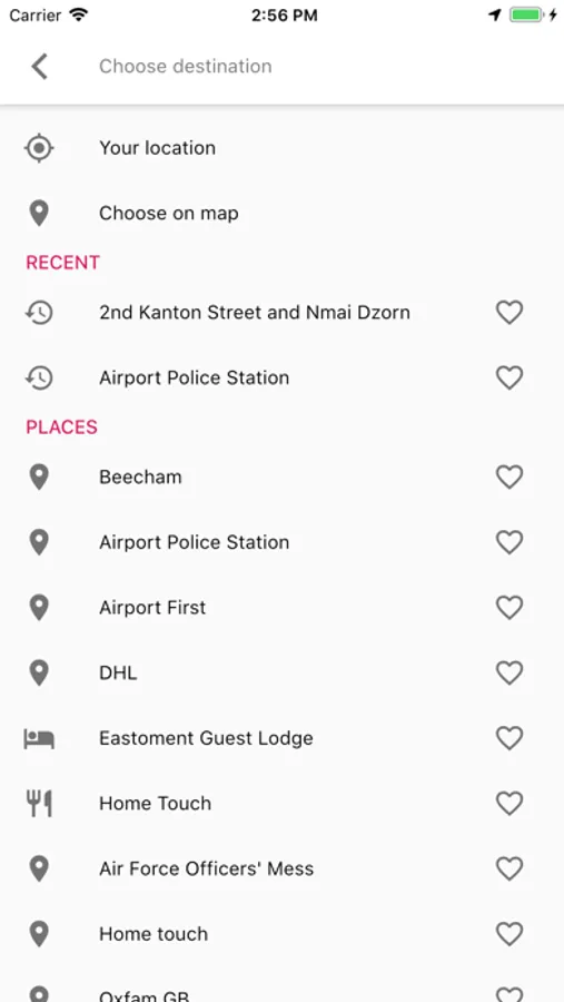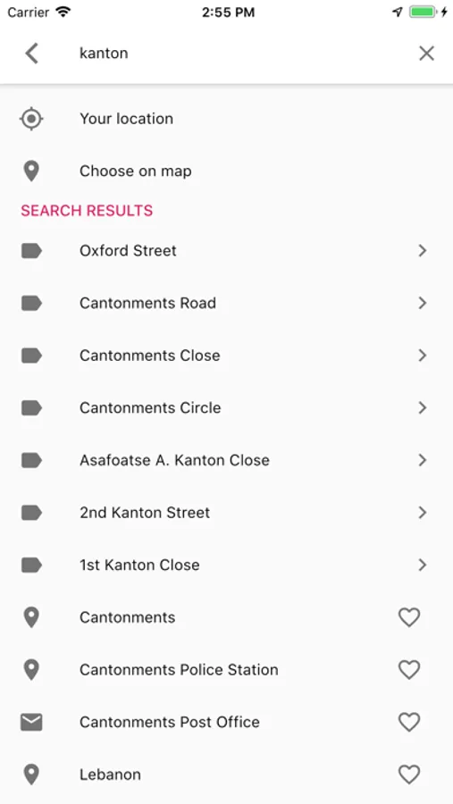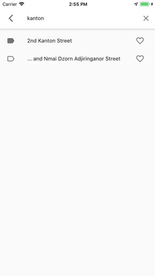 Search suggestions for street names, crossings and point of interests