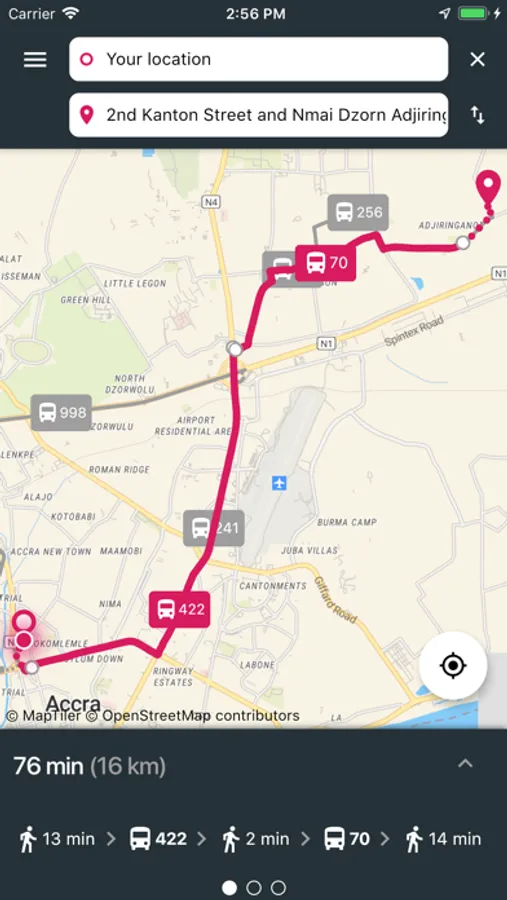 Show routes by car
