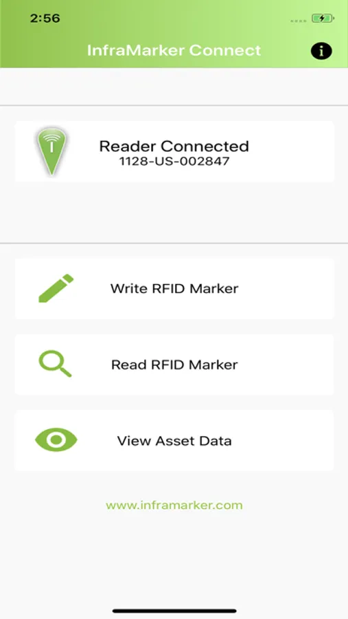 InfraMarker Connect is an easy-to-use mobile app for reading and writing RFID information to infrastructure assets in the field. The app complies data from the RFID tag with your mobile device date/time/location information to create a unique asset record. Data can be stored in the app or exported into data management or GIS platforms.
