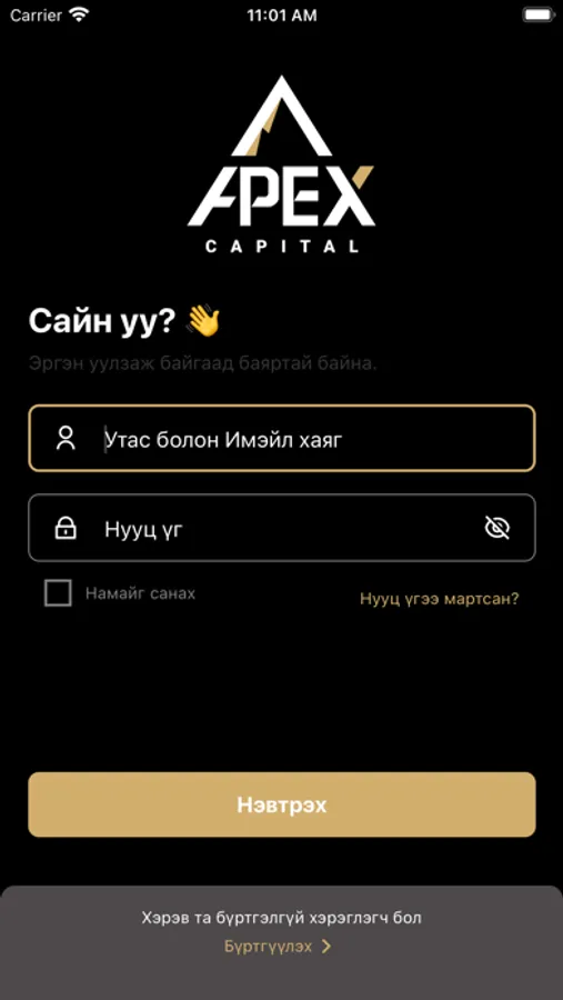Апекс Капитал Үнэт Цаасны Компани нь Санхүүгийн Зохицуулах Хорооноос олгосон тусгай зѳвшѳѳрлийн дагуу брокер, диллер, андеррайтерийн үйл ажиллагааг явуулдаг. Манай баг эрч хүч, тэмүүлэл дүүрэн, Монголын хѳрѳнгийн зах зээлийн шинэ эрин үеийг бүтээлцэх чин хүсэлтэй ажиллаж байна.
