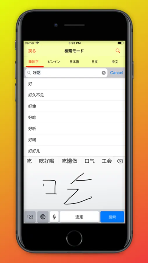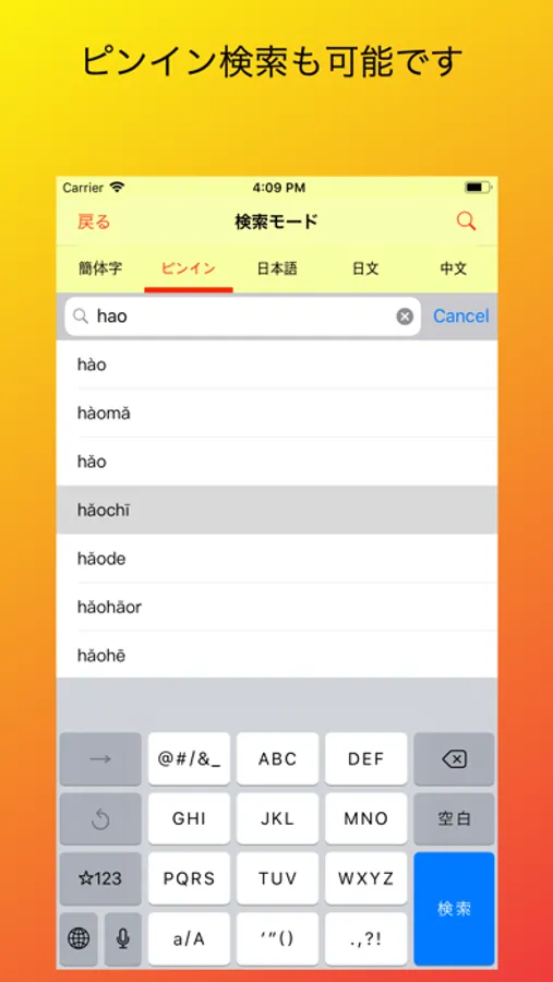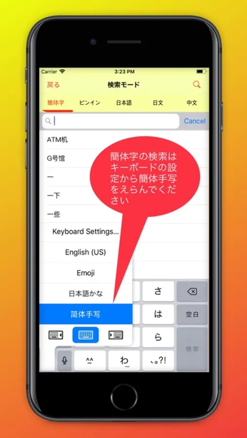 注意:簡体字対応です。キーボードは、「設定」で簡体手写を選択することをお勧めします。ピンインはアルファベットで検索可能です。