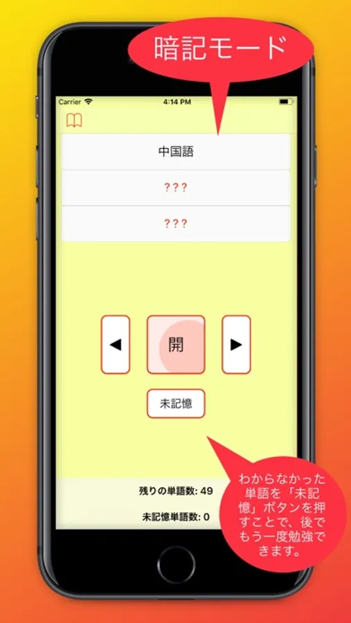 第二言語としての中国語は、テストも多いと思います。そんな時には、本アプリの暗記モードを使用してください。電車の通学途中などで、活躍します。暗記モードは、アナログな単語カードの機能に加えて、未記憶単語を保存する機能をつけました。後で復習するときに非常に便利です。
