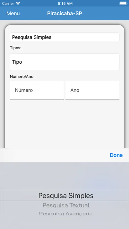 • Pesquisa Textual(Ementa/Assunto e Classificação) ;