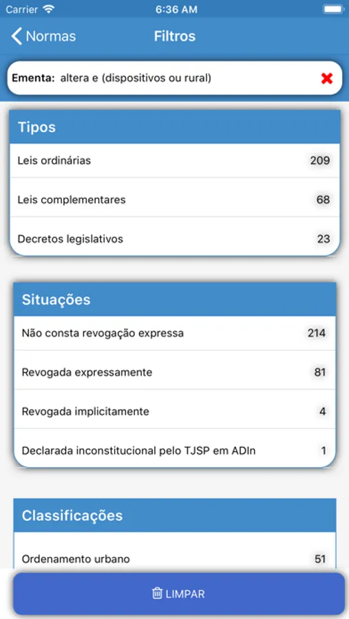 - "altera e (dispositivos ou rural)" (que contenha o termo "altera" e uma das duas palavras "dispositivos" ou "rural");
