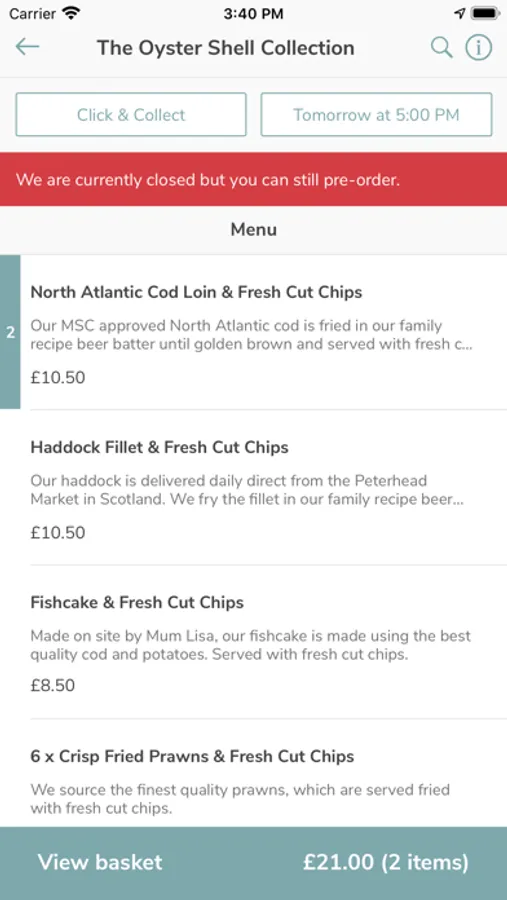 Beat the queue. Order and collect from our daily menu of the best British fish and chips, grilled seafood and Old English classics, direct from your smartphone- using our app.