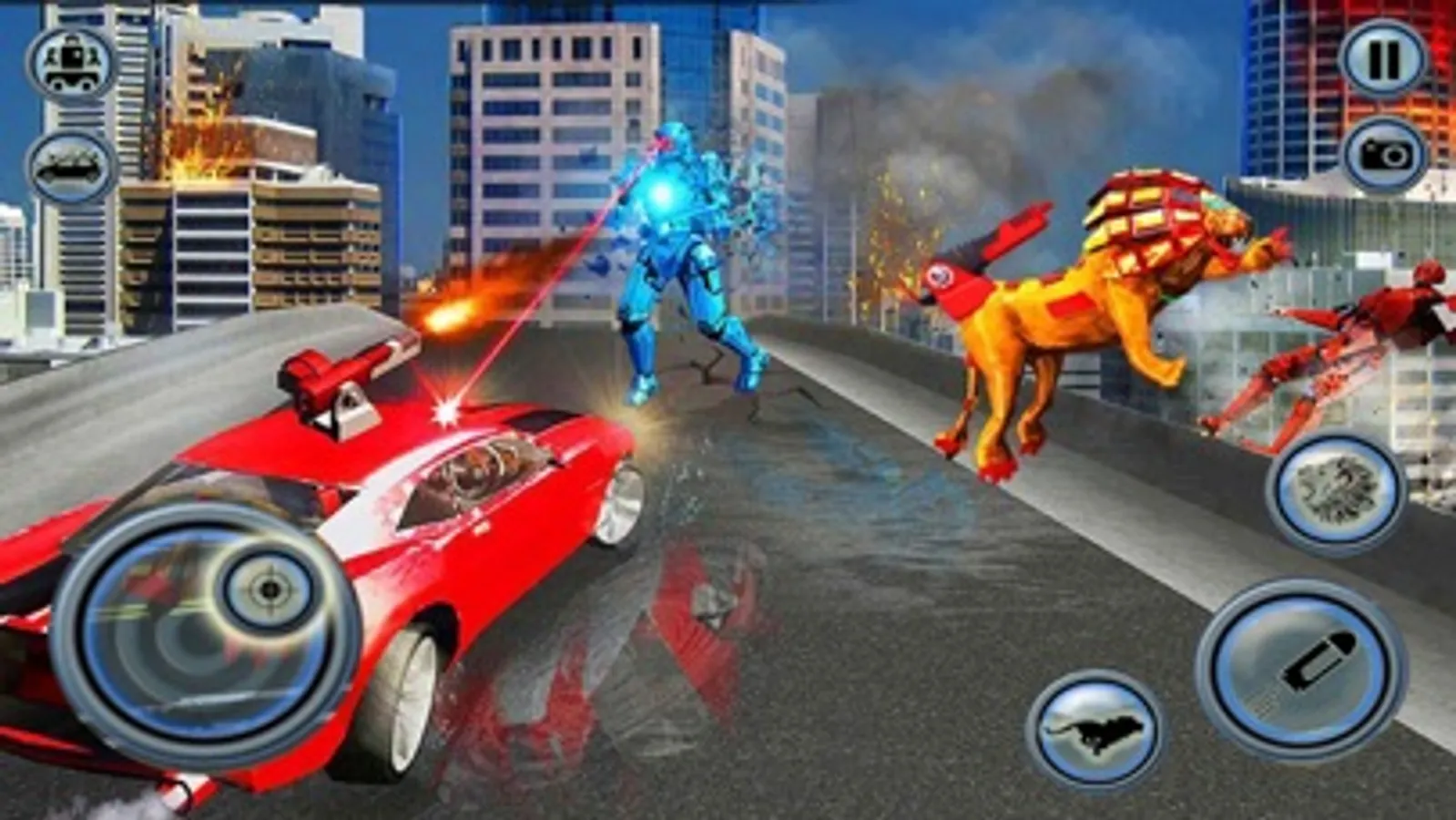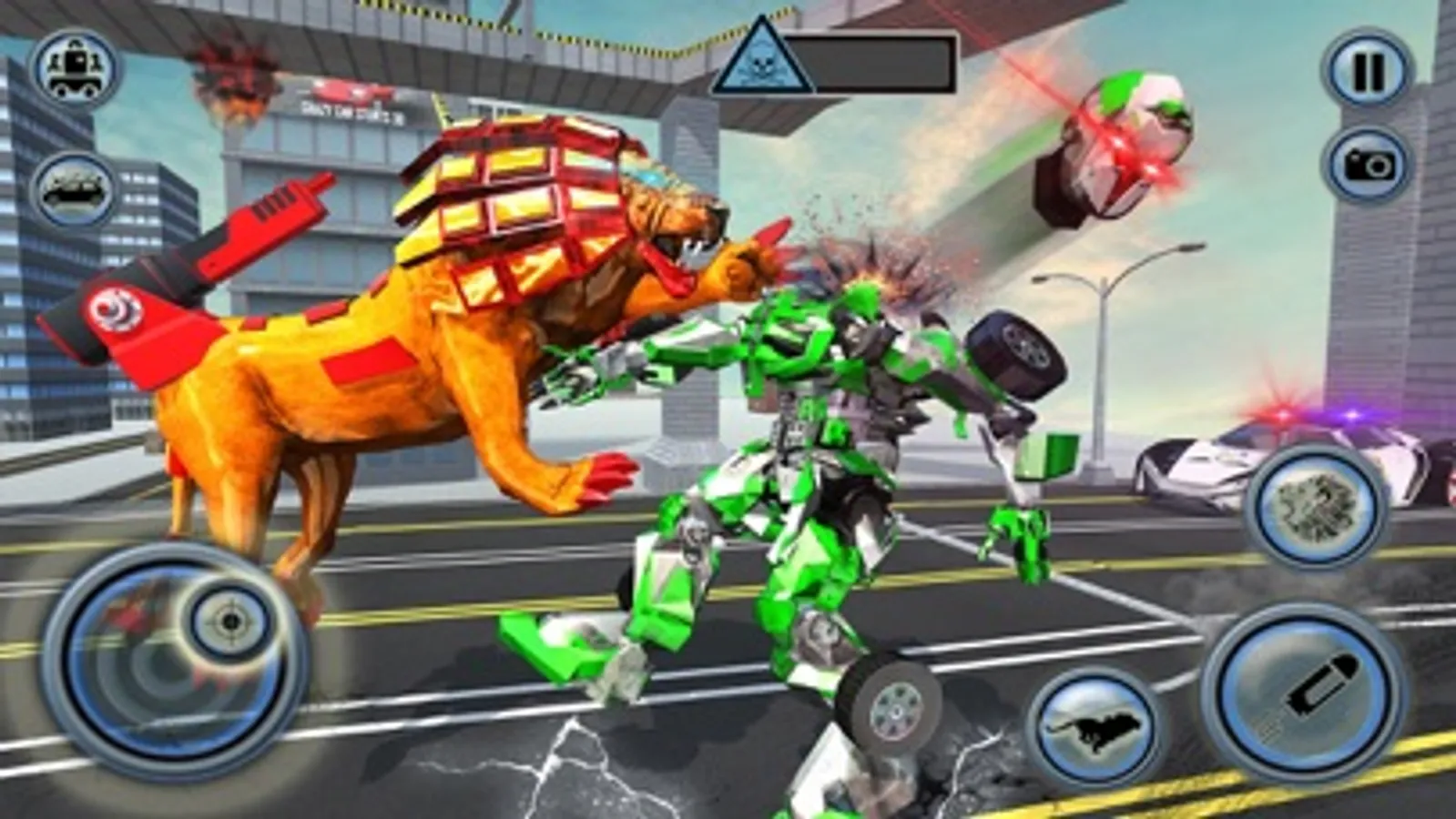 Enjoy the thrill in this new futuristic lion robot transformation games & drift car games with mech warrior in the season of real robot fighting games. Be the ultimate furious lion robot in this transform game with new and free lion robot battle will face dramatic lion robot transform fight. The futuristic multi robot wants to destroy your city in the robot battle games with police robot lion simulator and wild animal games who needs super hero robot wars of the futuristic robot transforming for battle robots and real robot car transformation in this best robot games for kids, Police cop car robot shooting games and Futuristic car games. Help the other flying multi robots transforming in robot eagles and helicopters. Enemy robots are like gorilla, bear, pigeon, cheetah, tiger, dragon and many more wild animals. Enjoy the Robot Fire Fighter Real War Simulator. Transform the super hero robot into lion Robot Tiger and the lion Robot Tiger back into a muscle car or multi robot
