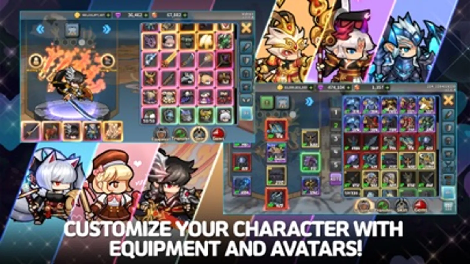 Customize your heroes from head to toe with the loot collected from your Idle adventure!!