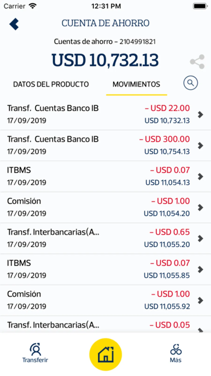 Finalmente, esta aplicación te ofrece una visualización general de los productos financieros que mantienes con Banco Pichincha Panamá.