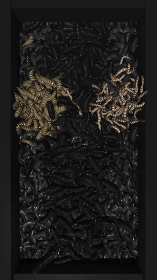 * 3+ species: Lucilia, Caliphora, Zophobas
