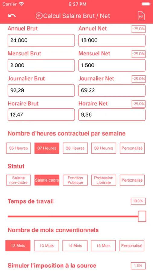 Outils complet pour calculer vos revenus, conversion Brut / Net, simulation de votre prélèvement à la source, simulation d'une augmentation avec l'impact sur vos impôts.