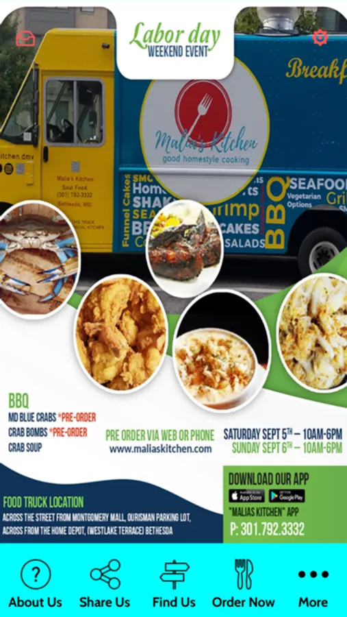 Malia’s Kitchen serves down home soul food using recipes from as far away as Florida on up through New Orleans through the Carolina’s and our Pit Master Chef Uhry all the way from Houston, Tx.