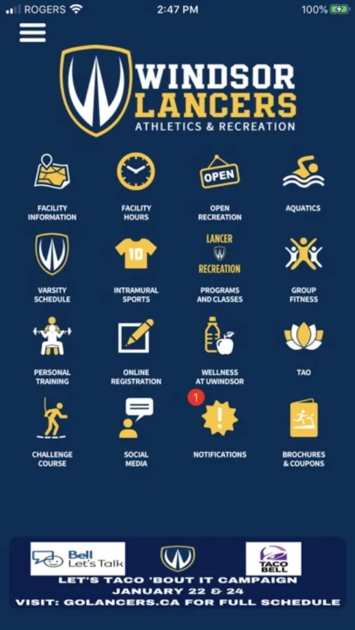 This is the official app for the Department of Athletics and Recreation at the University of Windsor. GOLANREC will keep you up to date with all the latest news and announcements for all things Athletics and Recreation. Register for memberships, fitness classes, check out varsity game schedules, get updated open recreation times, browse facility rentals and receive notifications of closures, cancellations and more! GOLANREC takes our mission mobile, helping us to provide a wide variety of professional programs and physical activities that promote and enhance community, learning, leadership, lifelong wellness and academic success.