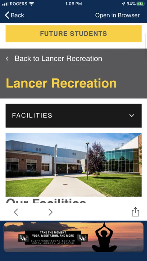 OFFERINGS: Easily find information and links to Intramural Sports, Fitness Classes, Aquatics Programs, Wellness and Student Employment Opportunities. Never miss out again!