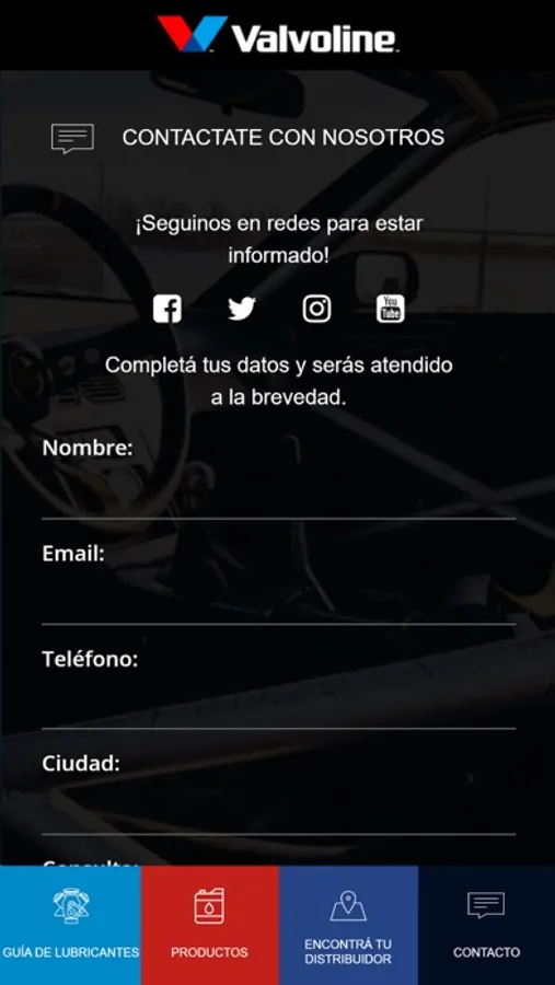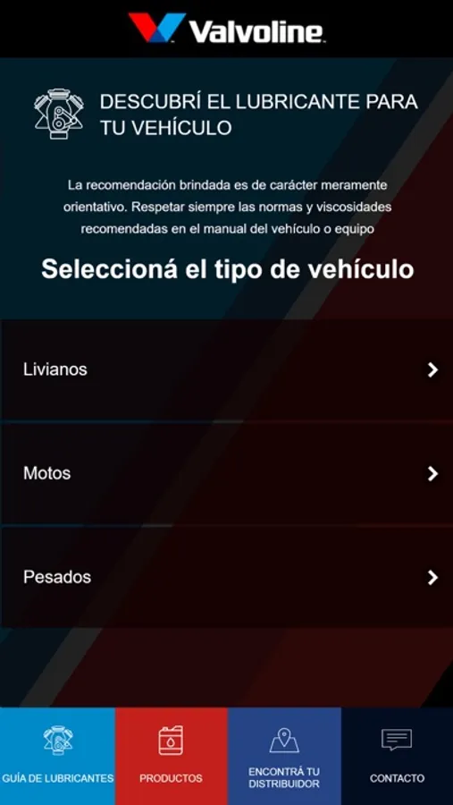 Bienvenido a la app oficial de Valvoline Argentina.