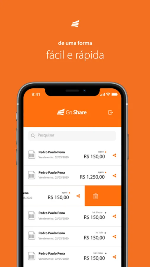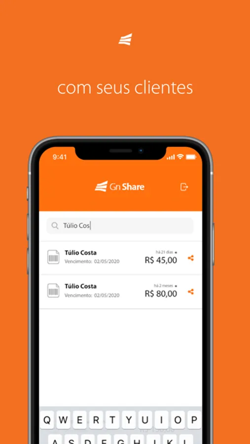 Boletos, parcelas ou carnês inteiros, links ou botões de pagamentos podem ser compartilhados pelo Gn Share. Disponibilizamos um aplicativo mais dinâmico ao usuário, já que não necessita de login e senha para a sua utilização. Dessa maneira, você continua focado em seu trabalho na plataforma web, enquanto se beneficia de todos os recursos de compartilhamento do seu celular! É mais tempo, agilidade e conforto para realizar as suas cobranças! Baixe agora e comece a compartilhar as suas cobranças.