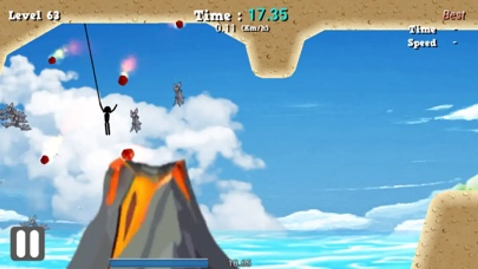 Shoot and pull the rope with one touch to avoid various obstacles and traps and reach your final goal within a limited time.