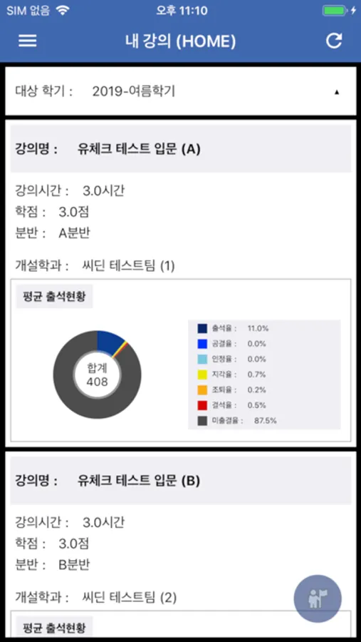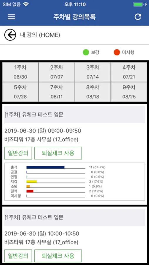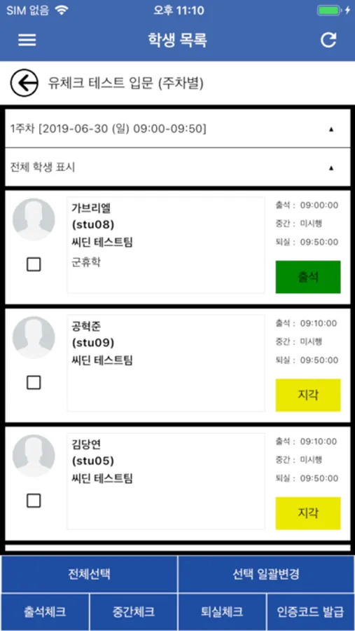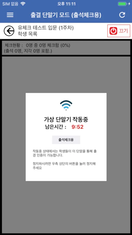 학생분들께서는 '강동대학교 전자출결(학생용)' 앱을 사용하시기 바랍니다.