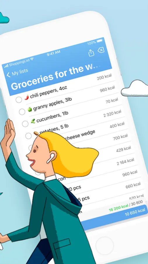 Install the “Shopping List & Calorie Control” application - the most convenient assistant for planning out the calorie amount in your grocery basket.