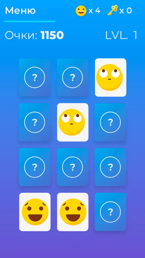 Игра на тренировку памяти для ума! Вам необходимо запомнить пары смайлов, а затем открыть все карточки в правильном порядке!