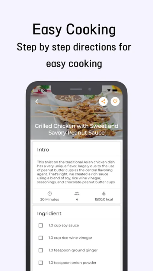 - Mark as favourite allows you to get your favourite recipes easy and quick.