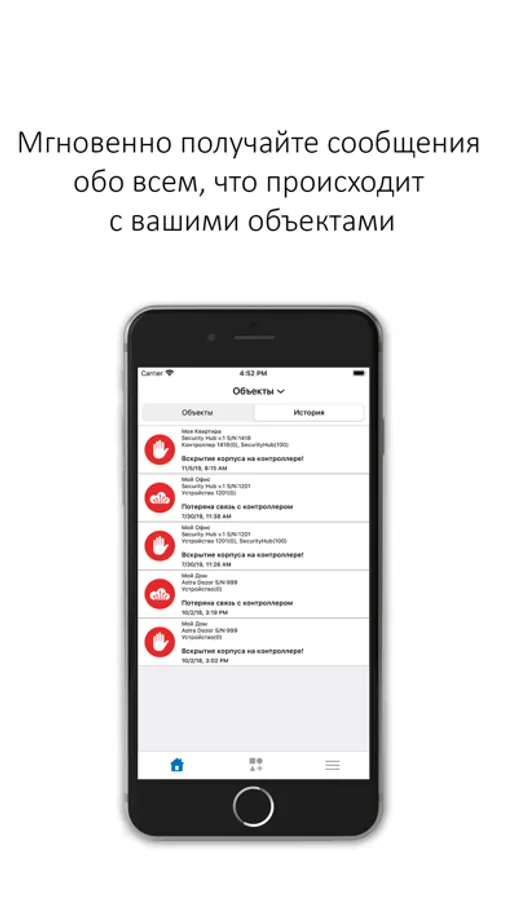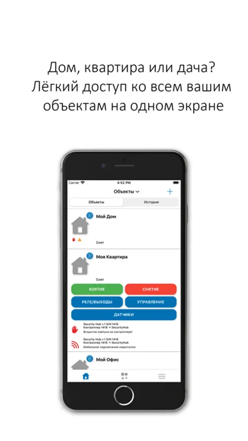 Приложение для IOS-устройств обеспечивает постоянный контроль охраняемого помещения. Вы дома, даже, когда не дома.