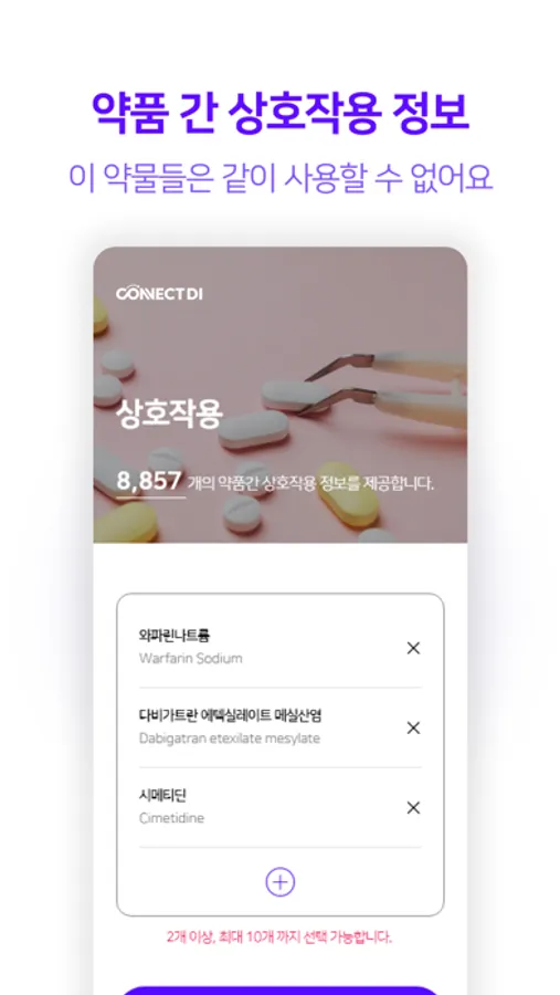 - 8천여 개 약품과 약품간 상호작용 정보를 검색할 수 있습니다.
