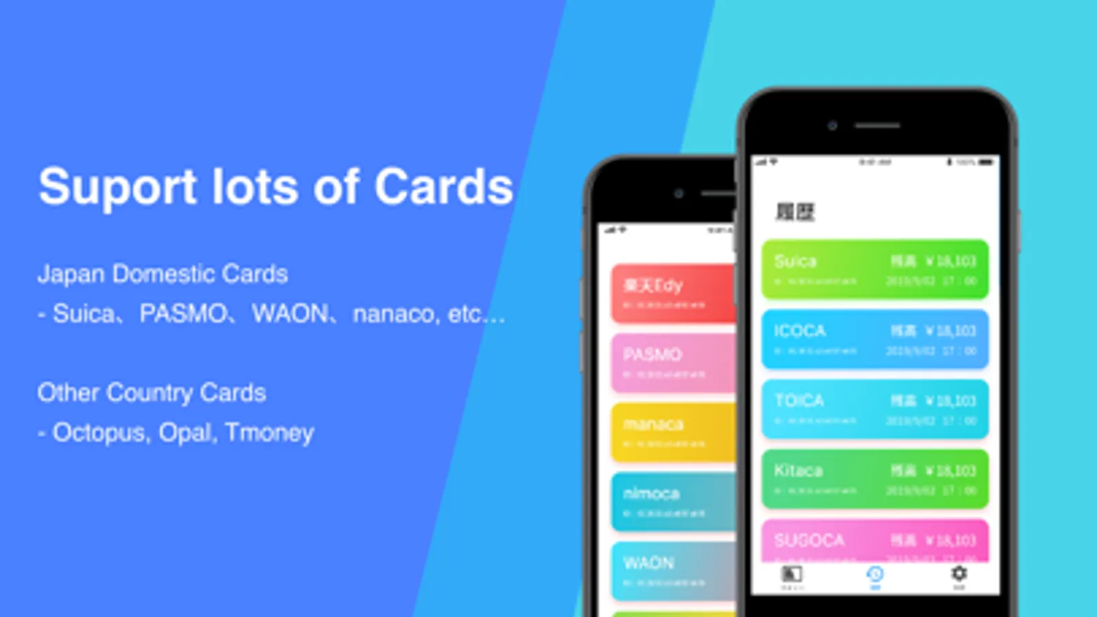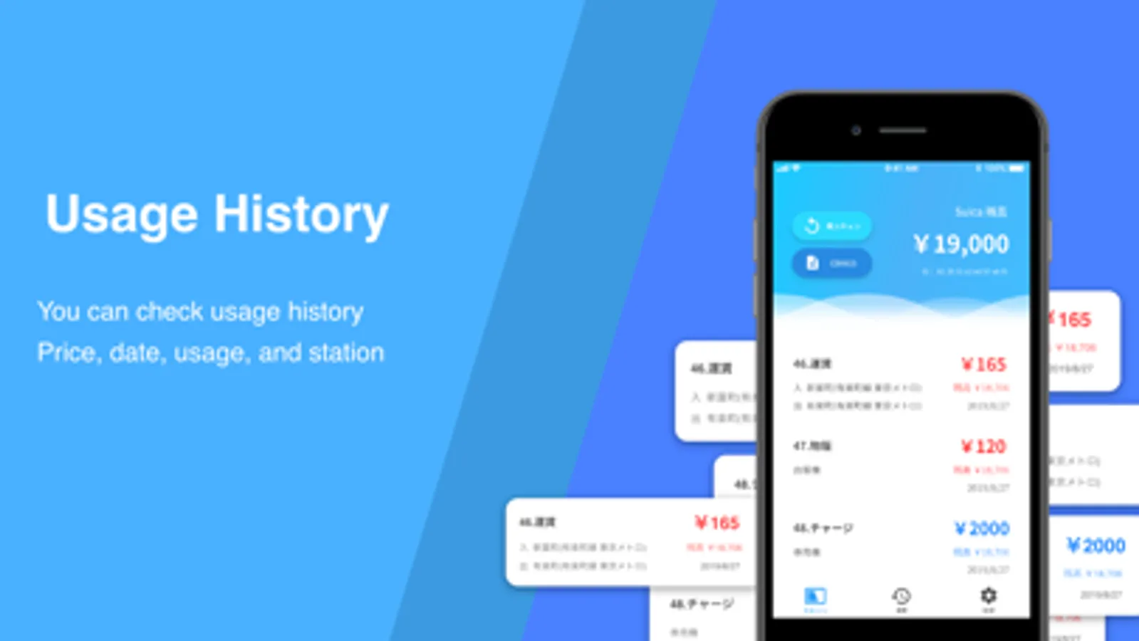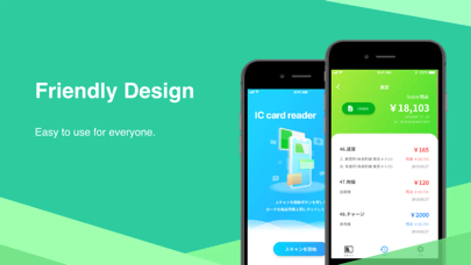 - You can scan balance and usage history of IC Card (ex: Suica, PASMO)