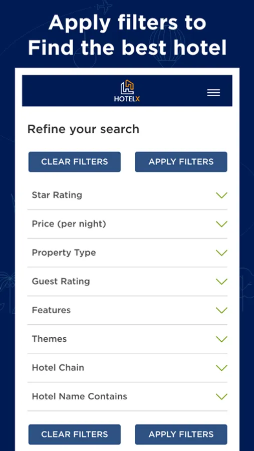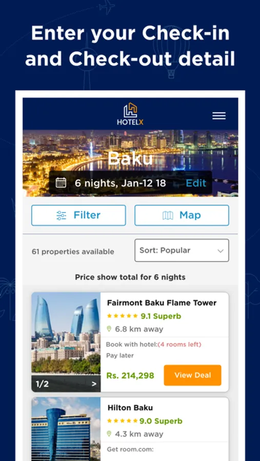The best places to stay are waiting for you! Download HotelX - Cheap Hotel Finder and get the chance to stay at a luxury or budget-friendly hotels as per your choice.