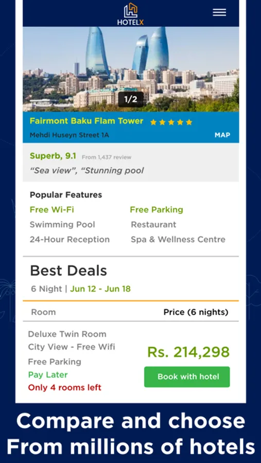 HotelX - Cheap Hotel Finder has made the hotel booking process easier for you. The high-end features allow you to book hotels and rooms of your choice according to your budget.