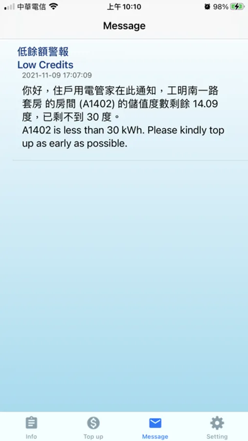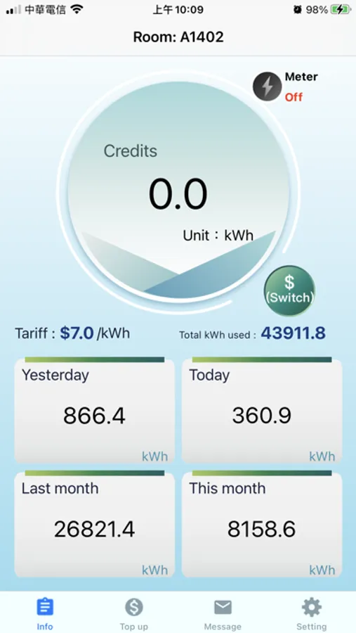 E-Tenant App is use with DAE cloud house system. The tenant can install the App, register and pair the room/meter. The tenant can read the meter info, system message and topup history through the app. The tenant can use the App with kiosk to top up electricity credits of the room.