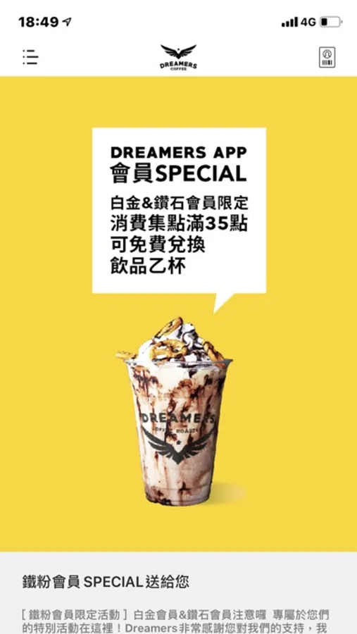 會員註冊後可修改會員資料、查看優惠券匣及消費紀錄等;消費時出示會員卡條碼即可進行累點,會員累積之點數可兌換優惠券,給您各種好康優惠!