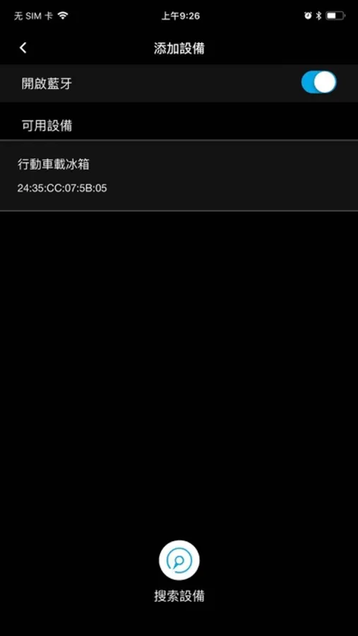 透過藍芽連接方式控制車載冰箱,即時監控並調整車載冰箱的設定值