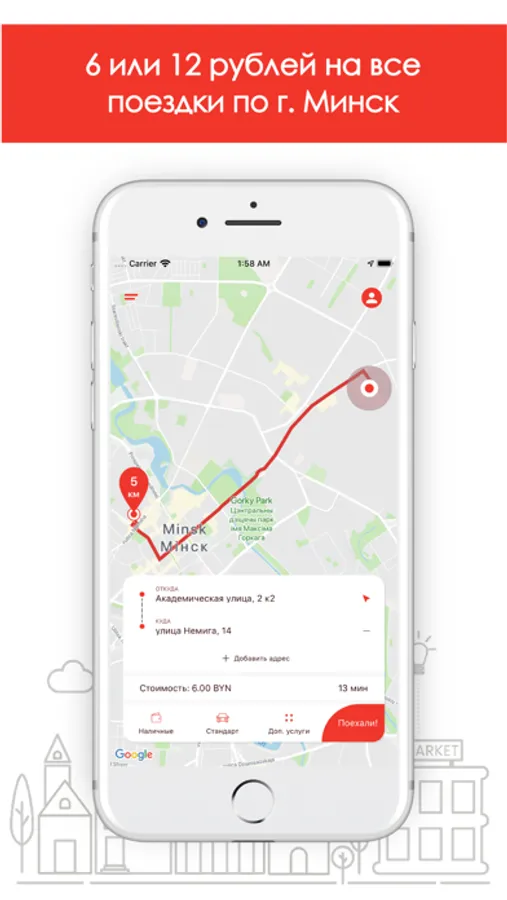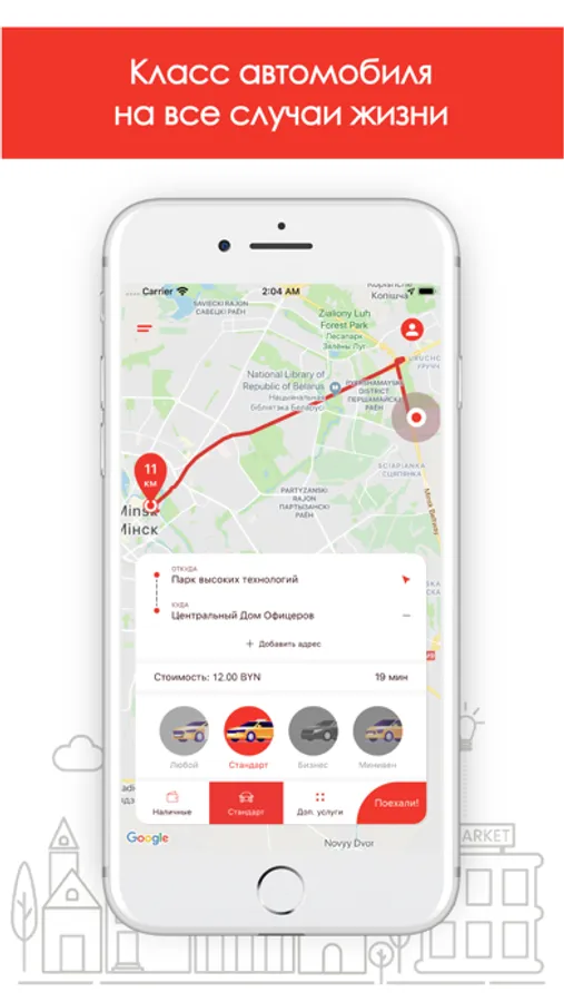 - заказ такси Минск в любую точку одной кнопкой;