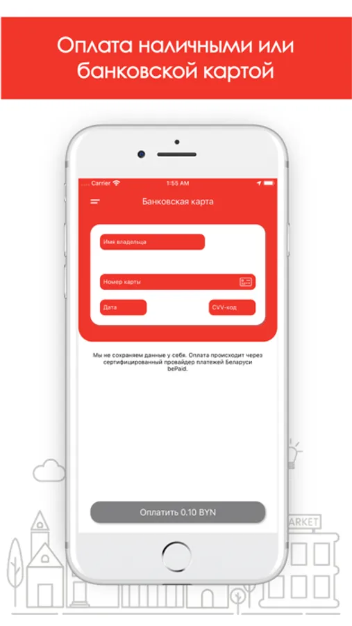 - возможность оплаты наличными или привязанной банковской картой;