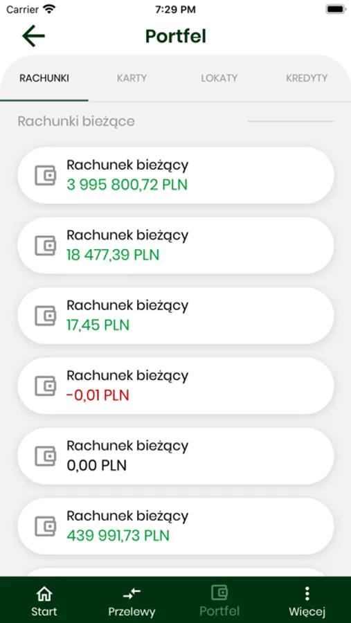 - prezentowanie rachunków, kart, lokat i kredytów klienta,