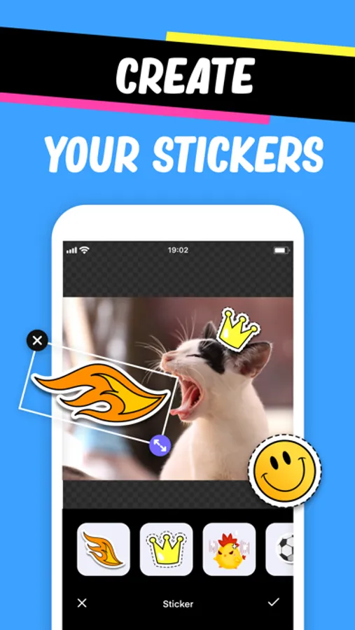 - Add your own texts and Emojis to your stickers.