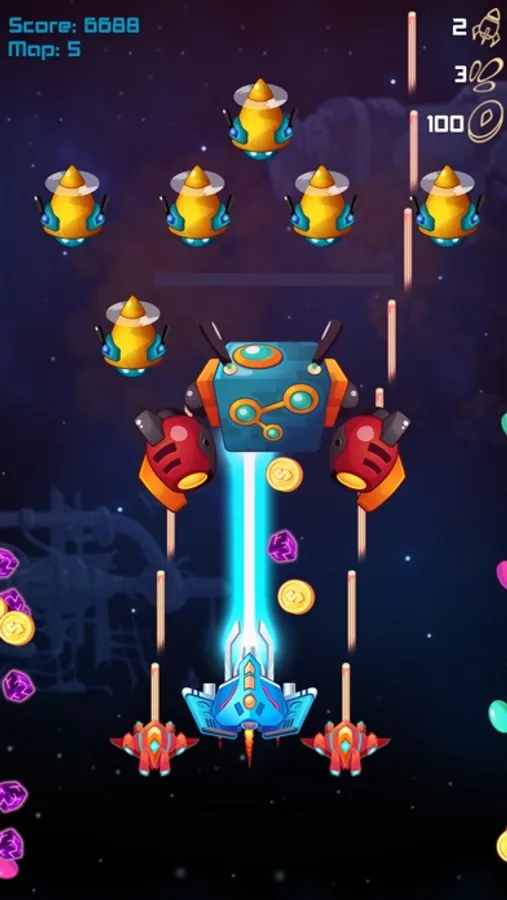 your mission is control fighter and join the battle to save earth from the space attacker in this Galaxy Shooter 2019.