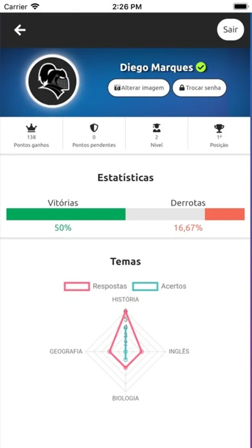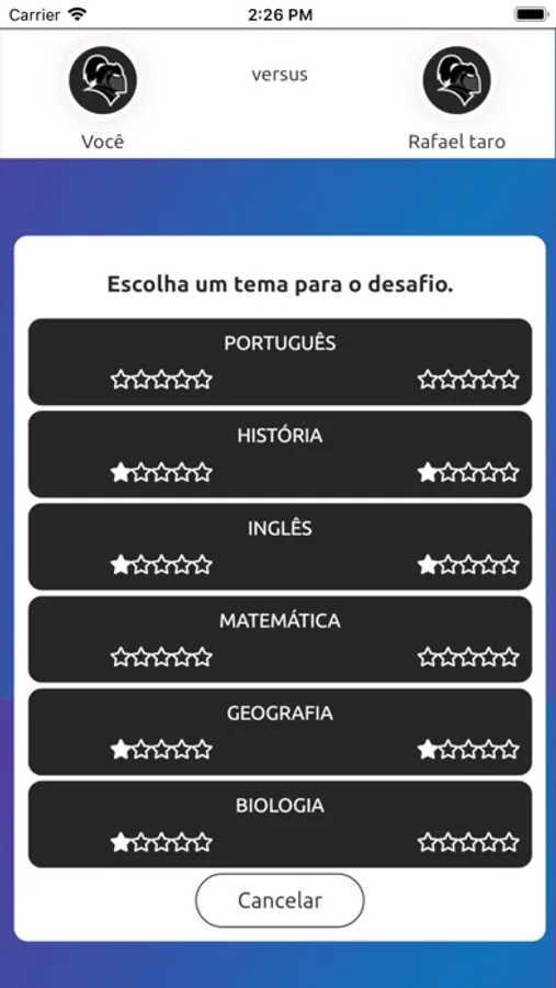 Desafie seus amigos em disputas de conhecimentos gerais e veja quem faz mais pontos.