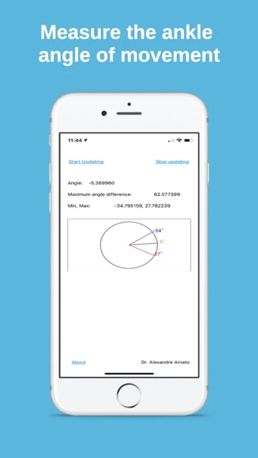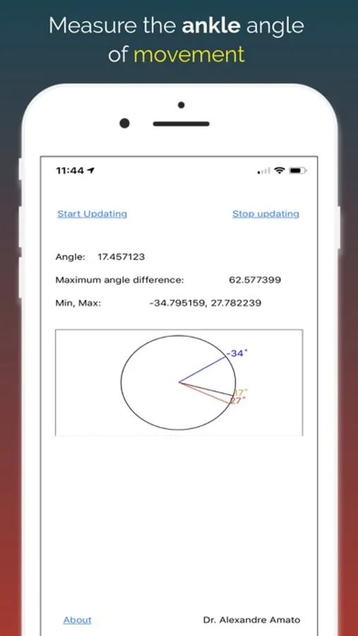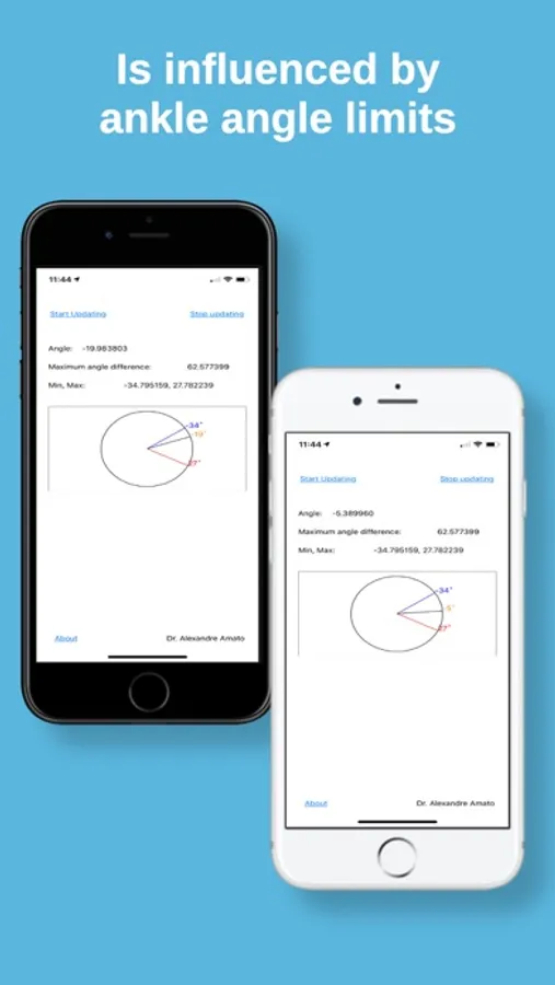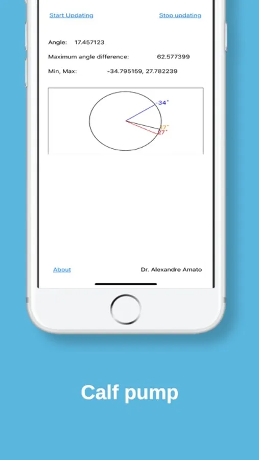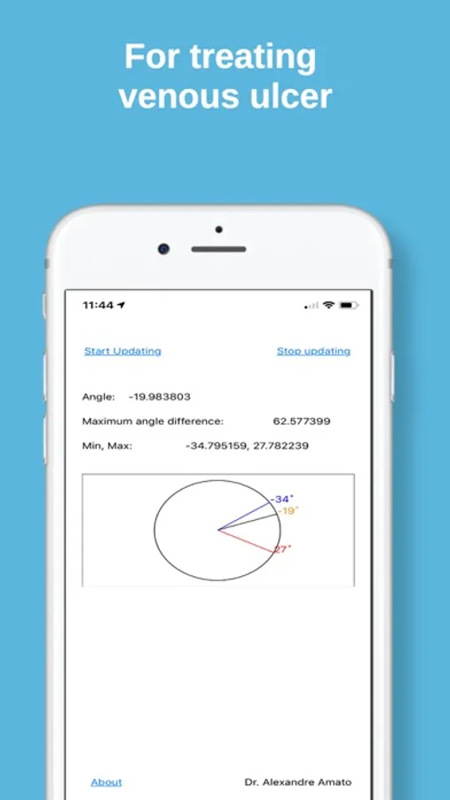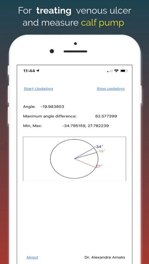 iOS App goniometer for measuring ankle ankylosis. It can be considered as of paramount importance in the pathophysiology of patients with CVI since total and permanent ankle ankylosis prevents patients from being healed. In general, ankylosis is not a spontaneous complaint of patients with lower limb ulceration, even when it causes deformities and limitations. Ankle motion depends on an efficient contraction of the triceps surae muscle, which is considered a fundamental part of the calf muscle pump for the venous return from the lower limbs. Therefore, the motion of this joint is important for the efficiency of the calf muscle pump in order to prevent venous stasis and its consequences.