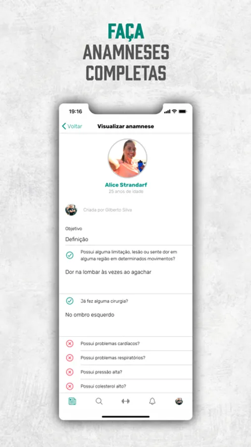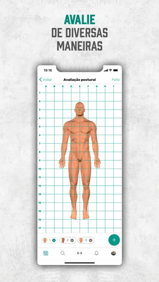 - Avaliação: Faça anamneses, avaliações posturais e avaliações físicas através de diversos protocolos disponíveis.