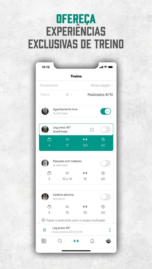 - Produtividade: Crie treinos predefinidos, calcule metas automaticamente, importe fichas e economize tempo.