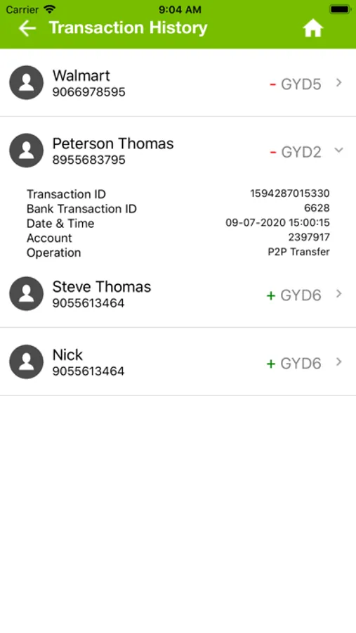 Nothing goes unnoticed. Each and every transfer done or received by app can be viewed through transaction history.