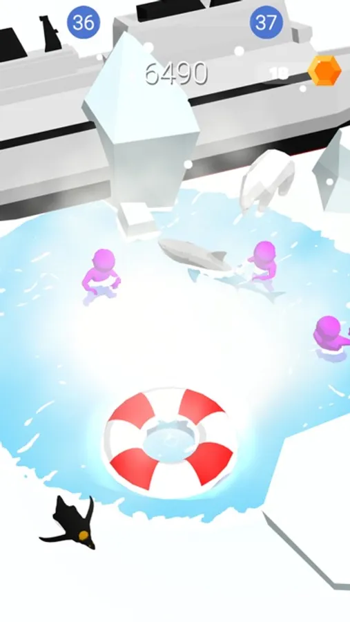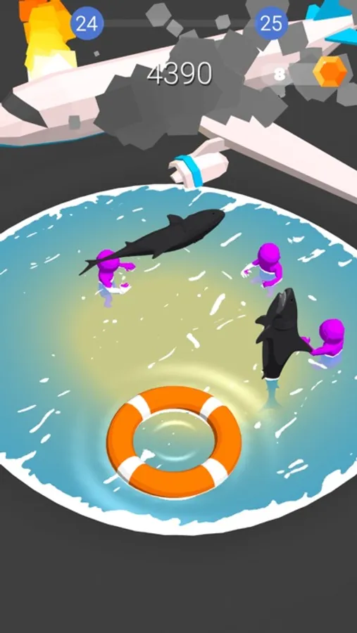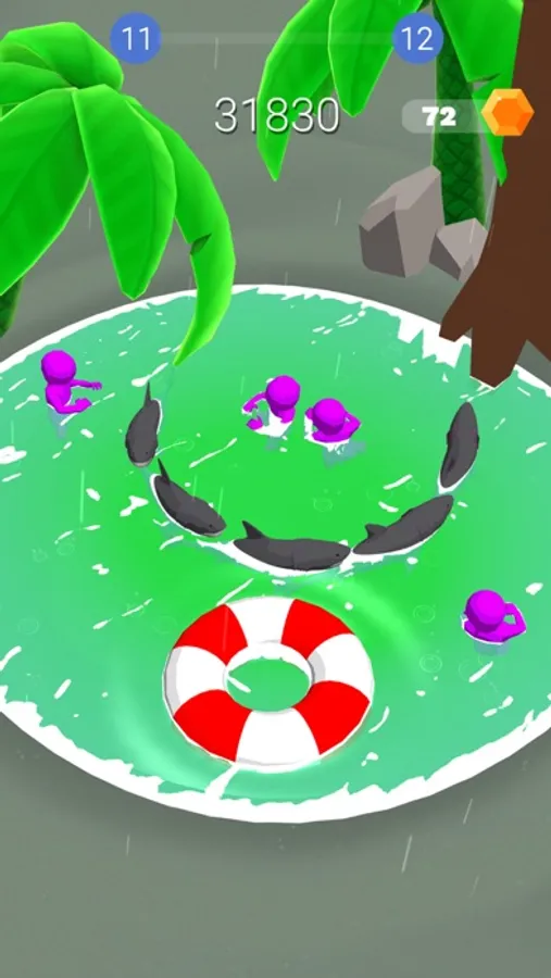 Rescue everyone with your lifebuoy! Avoid the path of all sharks! Be careful not to touch any shark!