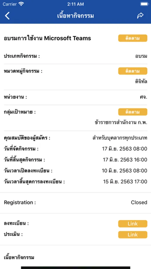 7. สมาชิกสามารถเลือกติดตามกิจกรรมที่ตนเองสนใจตามหมวดหมู่ หรือกลุ่มเป้าหมาย ของตนเองได้