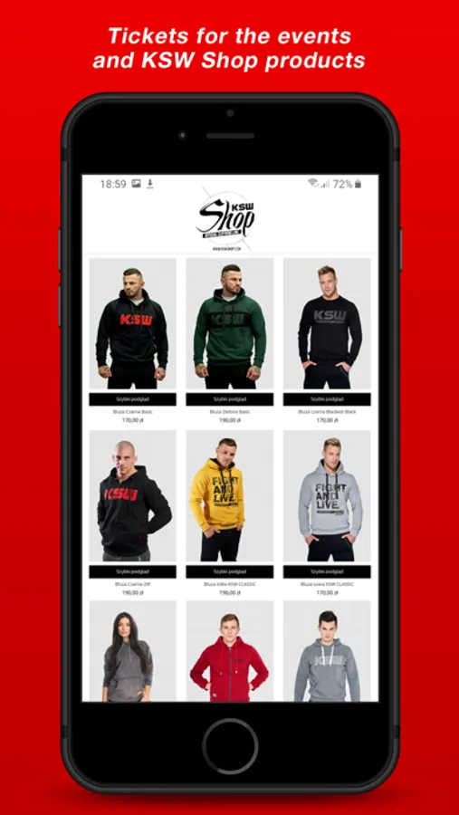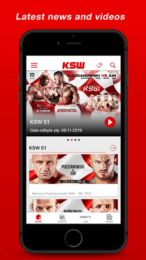 A perfect app for MMA fans – the entire KSW world in one place. The KSW app is the only authorized tool to watch all the KSW events live on your phone. You can change the quality of the broadcast or switch the commentary language. The app allows you to rewind the event when it’s happening LIVE. You also have extra 72 hours to rewatch the show after it ends. Through the app, you can buy tickets for the events, sign up for KSW camps, order from the newest collections at KSW Shop, check the event schedule, fightcards and locations of the upcoming KSW shows. Always have the newest information about the Federation, sign up for trainings and check the KSW Fan Zone locations. Pick and order clothes and equipment from the KSW Shop collections. Watch the trailers, backstage materials, events from the archive, the best actions, the most spectacular knockouts and incredible submissions. Download the KSW app.
