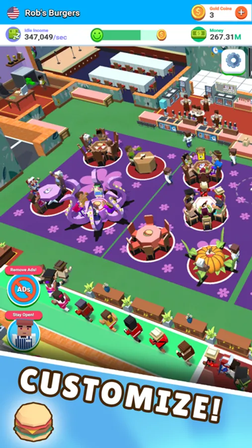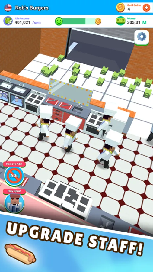 Any business tycoon knows that more customers means more work! Do you have enough waiters or do you have staff standing idle? Are your chefs skilled enough? Can the manager count the money fast enough? Make sure you employ the right staff to keep your diner running efficiently and keep the tips coming in!