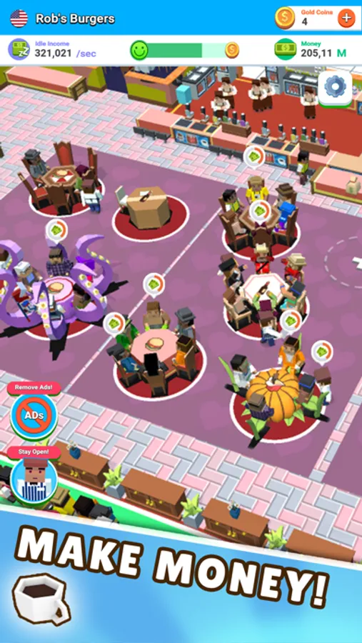 Turn your diner around from humble beginnings to global coffee franchise! Add more tables, hire better staff and buy extra facilities as you see your profits multiply!