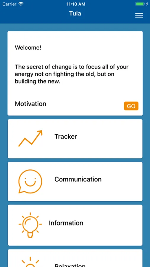 Tula provides 24/7 support to help people reduce their drinking. Features include an anonymous support network, articles and information related to drinking reduction and overall wellness, relaxation and mindfulness exercises, a weekly check-in and drink tracker.